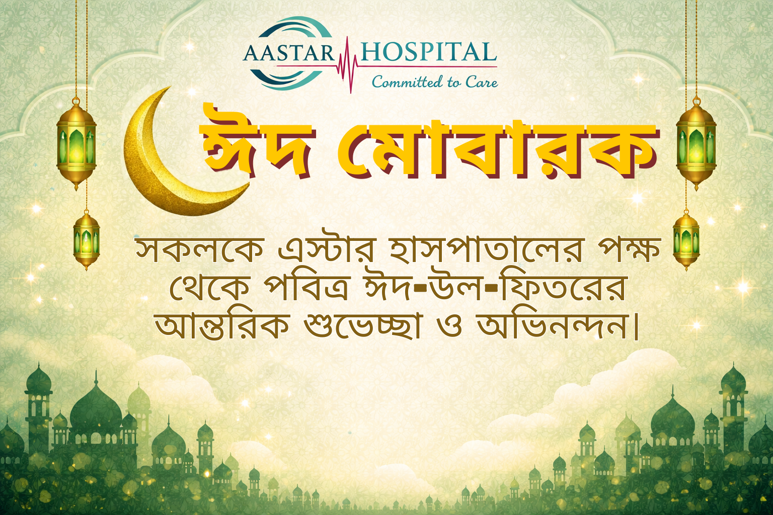 March 21, 2026 AASTAR Comment: 0 Uncategorized 🌙 ঈদ মোবারক 🌙 এস্টার হাসপাতালের পক্ষ থেকে পবিত্র ঈদ-উল-ফিতরের আন্তরিক শুভেচ্ছা ও অভিনন্দন। ★ AASTAR HOSPITAL ★ আপনার ও আপনার পরিবারের জীবনে বয়ে আনুকশান্তি, সুখ, সমৃদ্ধি ও সুস্বাস্থ্য। 🌿 সুস্থ থাকুন, নিরাপদ থাকুন 🌿 — ধন্যবাদ —